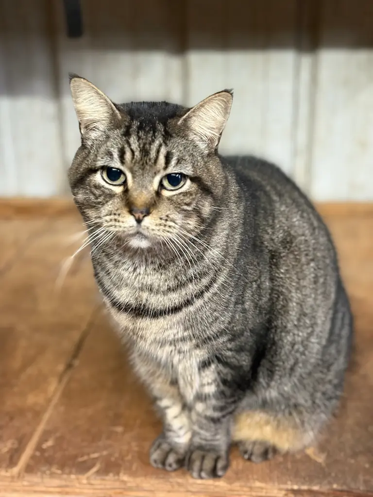 You may not see this elusive grey tabby. She has always been most comfortable on her own, even when her sister Lolo was here. If she does show herself, she loves to be rubbed from head to tail.